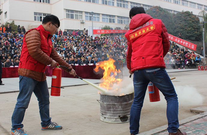 此外,结合山东省公安厅、教育厅有关“千万学子消防宣传大行动”的活动安排,在消防支队的业务指导下,通过消防专业培训,学校还组建了一支消防志愿者队伍。广大消防志愿者在校内公共场所、各商业网点、校园周边社区、商铺,发放宣传材料、现场演示消防器材使用并解答消防安全问题,开展消防知识普及。