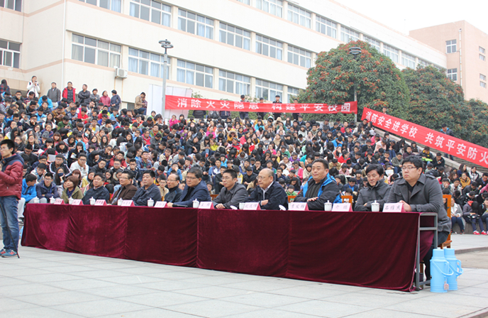 11月13日、14日,学校分别在南校区、东校区举办了以疏散逃生为主题的消防安全演练。副校长吴衍涛,学校有关部门领导、学院负责人及辅导员、各学院师生代表、宿舍管理员等共同参与了活动。演练分别针对高层公寓及人员密集场所发生火灾的情形展开,师生们就报警、疏散、逃生等相关环节作了演练。随后,公安处消防科人员现场讲解消防知识,并演示灭火器的正确使用。最后,学生们在现场燃起的火堆旁亲身体验了灭火器的实际操作。消防演练使所有参训人员充分认识到了消防安全的重要性,了解了安全逃生基础知识,提高了逃生自救能力,达到了演练目的,取得了较为满意的效果。