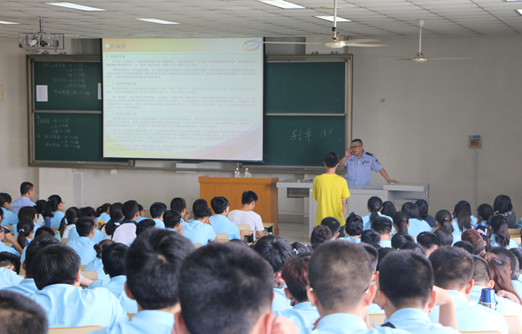 在课堂上,具有丰富经验的民警们给大学新生们作了一堂安全知识主题讲座。讲座结合民警在工作中遇到的真实案例,系统分析了高校学生常遇到的诈骗、两抢一盗等安全问题,特别是针对近期引起广泛关注的各类通讯网络诈骗案进行了深入浅出的剖析,总结诈骗案件特点,条分缕析的对诈骗手法进行解读,让同学们对网络诈骗有了更直观更深刻的认识。在讲座的过程中,部分同学就一些涉及安全防范的热门话题同民警们进行了交流,取得了良好的效果。