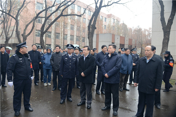 12月13日上午,泰安市委常委、政法委书记郭德文,泰安市副市长、公安局局长鞠向群,泰安市各县市区政法委书记、公安局长等一行来我校调研“红袖章工程”开展情况。党委书记徐剑波、副校长吴衍涛及相关部门负责人参加调研。