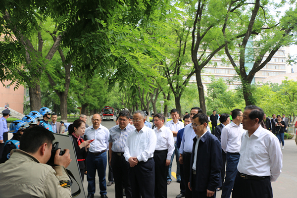 吴衍涛对逃生疏散演练进行了现场指导,并宣布演练开始。随着警报响起,上百名大学生志愿者在现场老师的指挥下有序撤离图书馆和教学楼,在空旷地点集合完毕。大学生志愿者代表上台宣读倡议书,呼吁大家强化防灾减灾意识、掌握防灾减灾知识、提高自救互救能力。