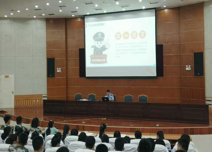 课堂上,具有丰富安全理论和实践经验的民警们结合实例,系统地为新生们分析了高校学生常遇到的诈骗、两抢一盗传销、防火等安全问题,特别针对近期引起广泛关注的各类电信诈骗等热点安全问题进行了深入浅出的剖析,让学生们对电信诈骗有了更深刻直观的认识。现场许多同学就一些涉及安全防范的热点问题积极同民警进行讨论交流。