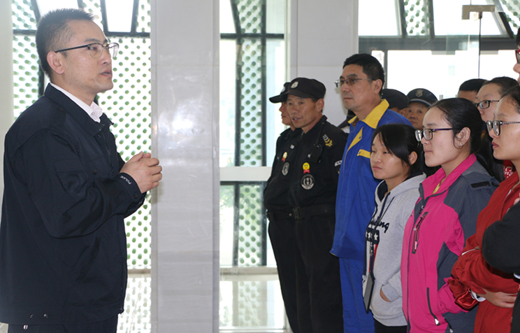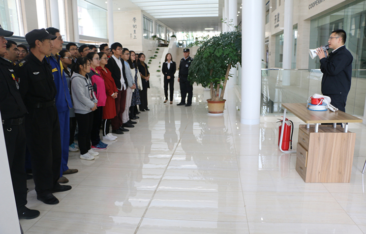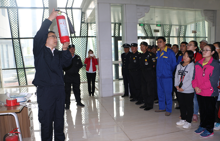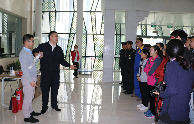 公安处消防科副科长周广全向师生员工讲解消防安全常识,并就常见消防器材的使用进行讲解。