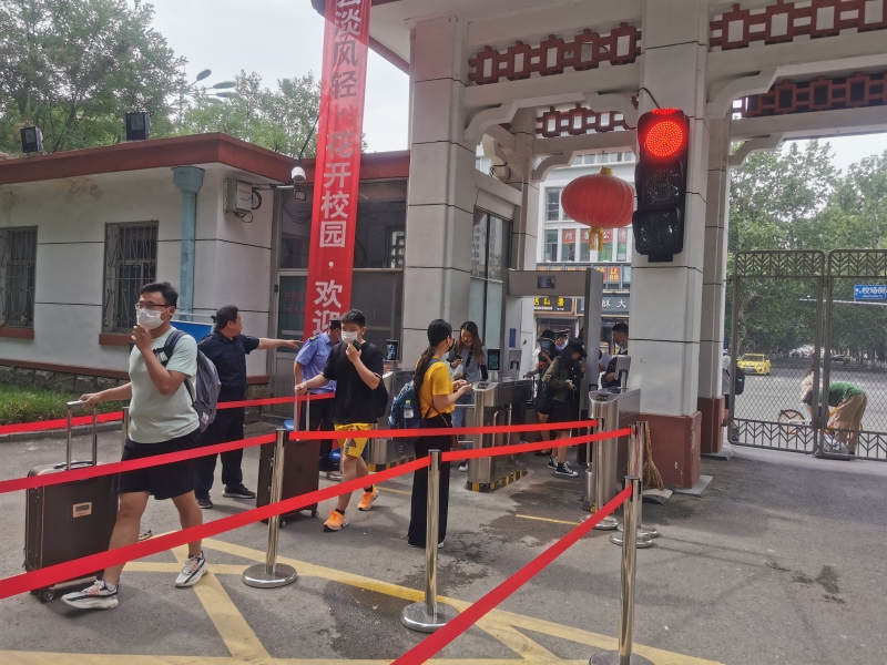严格防控不松懈。为做好疫情防控常态化形势下本科生离校安保工作,公安处结合南北校区具体情况作出部署安排,充分发挥“人脸识别速通门”作用,严格人员出入管理,规范报到程序,合理规划校内路线,同时积极联系驻地公安,协调做好毕业生离校期间校园周边交通及治安秩序管理。