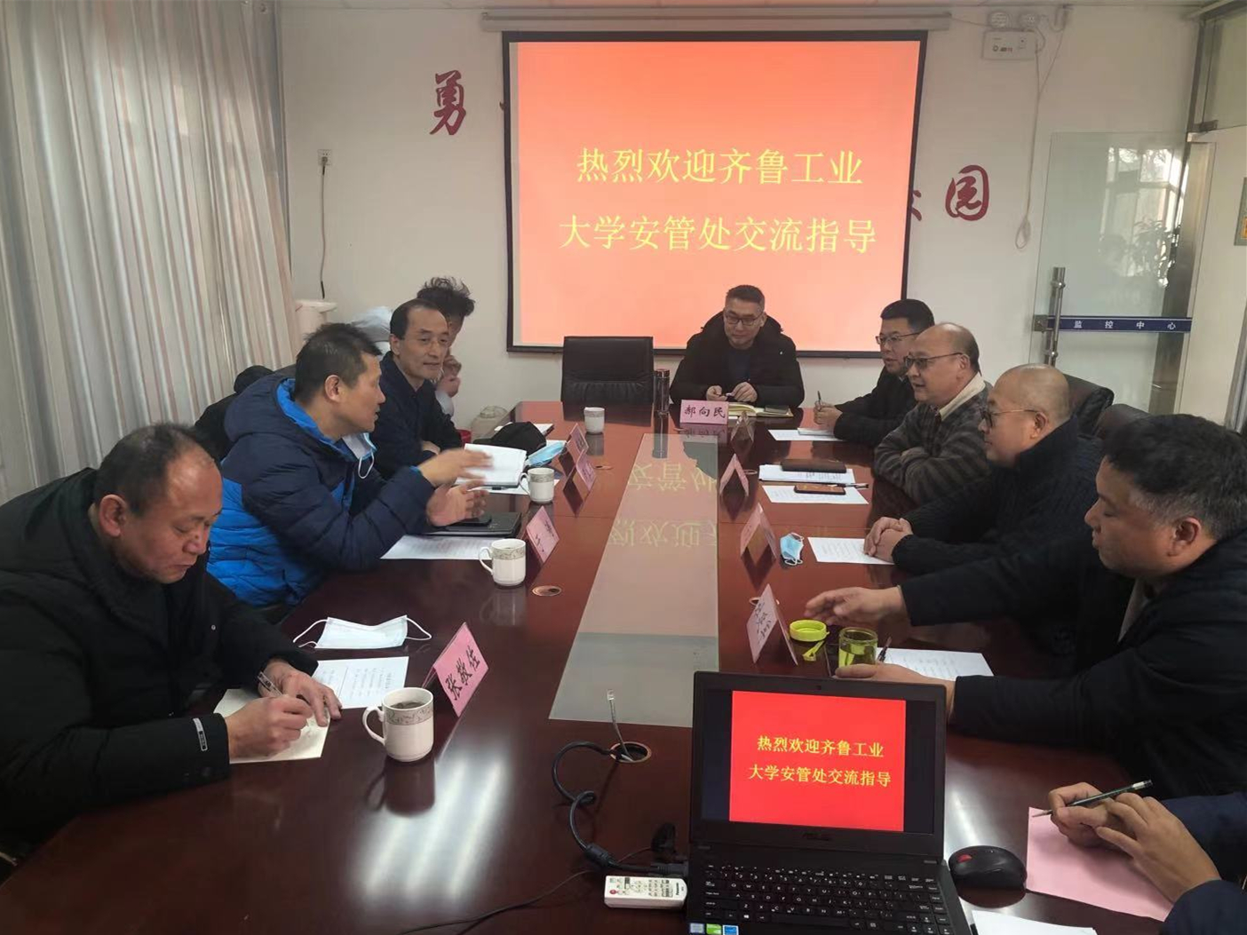1月28日,齐鲁工业大学安全管理处处长于涛一行来校考察交流。学校保卫处处长刘选伟带领相关人员围绕新形势下高校安全保卫工作开展座谈。
